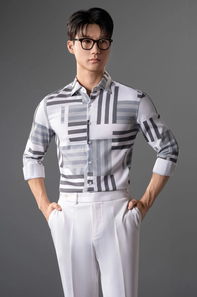 Áo Sơ Mi Dài Tay Màu Trắng Kẻ Xanh Đen Adam Store – SMC148