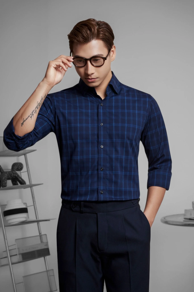 Áo Sơ Mi Dài Tay Màu Xanh Kẻ Ô Adam Store – Sdttk0041